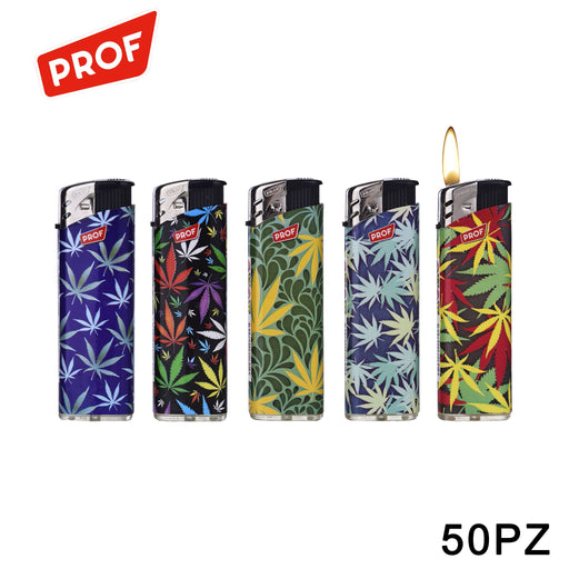 PROF ACCENDINO ELETTRONICO CON FIAMMA COLORATA LEAVES - Conf. da 50