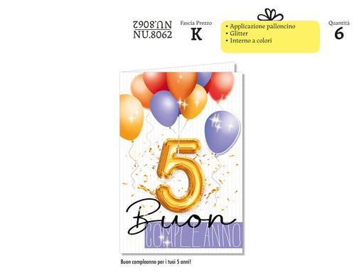 CROMO BIGLIETTI NUMERO 5 APPLICAZIONE PALLONCINO NU8062 - Conf da 1