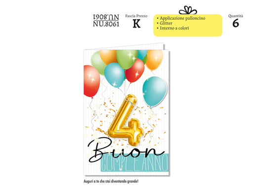 CROMO BIGLIETTI NUMERO 4 APPLICAZIONE PALLONCINO NU8061 - Conf da 1