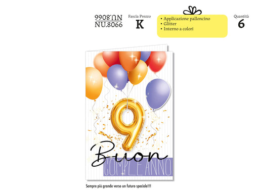 CROMO BIGLIETTI NUMERO 9 APPLICAZIONE PALLONCINO NU8066 - Conf da 1