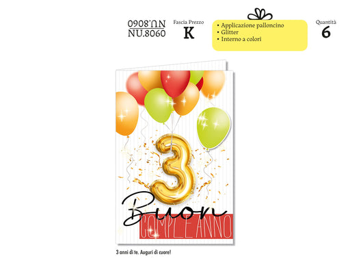 CROMO BIGLIETTI NUMERO 3 APPLICAZIONE PALLONCINO NU8060 - Conf da 1
