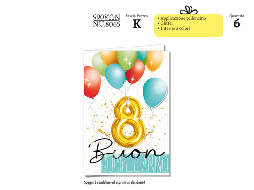 CROMO BIGLIETTI NUMERO 8 APPLICAZIONE PALLONCINO NU8065 - Conf da 1