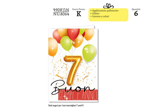 CROMO BIGLIETTI NUMERO 7 APPLICAZIONE PALLONCINO NU8064 - Conf da 1
