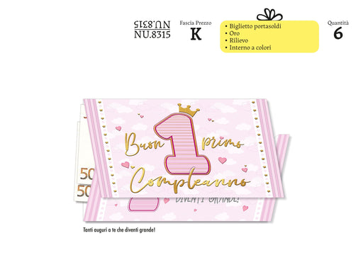 CROMO BIGLIETTI PORTASOLDI PRIMO COMPLEANNO NU8316 - Conf da 1