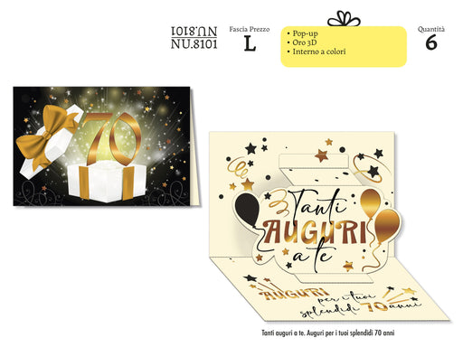 CROMO BIGLIETTI AUGURALI 70 ANNI ORO POP UP 8101- Conf. da 1