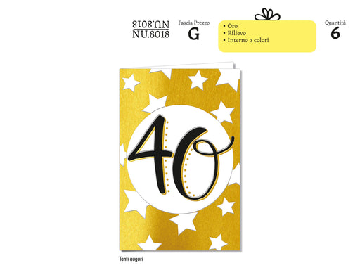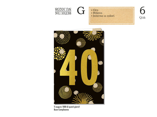 CROMO BIGLIETTI AUGURALI 40 ANNI ELEGANTE E SAGOMATO NU.6621 - Conf. da 6