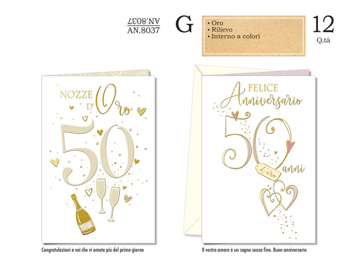 CROMO BIGLIETTI AUGURALI 50 ANNI ANNIVERSARIO AN.8037- Conf da 12