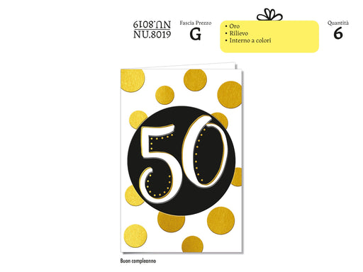 CROMO BIGLIETTI AUGURALI 50 ANNI ELEGANTE E SAGOMATO NU.6622 - Conf. da 6