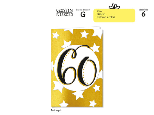 CROMO BIGLIETTI AUGURALI 60 ANNI ELEGANTE E SAGOMATO NU.6623 - Conf. da 6