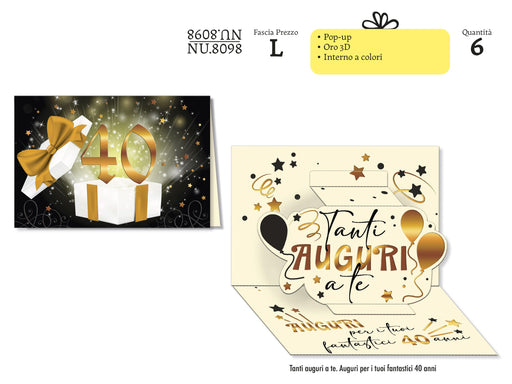 CROMO BIGLIETTI AUGURALI 40 ANNI ORO POP UP 8098- Conf. da 1