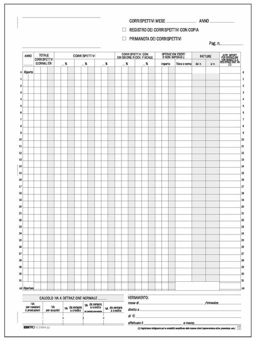 EDIPRO REGISTRO PIMA NOTA IVA CORRISPETTIVI 13X2 AUTORICALCANTE 30X23 E2104A