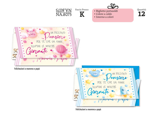 CROMO BIGLIETTI NASCITA PORTASOLDI NA.8075- Conf da 12