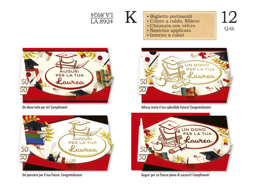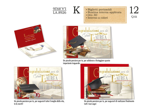 CROMO BIGLIETTI LAUREA PORTASOLDI ELEGANTE LA.8932- Conf da 12