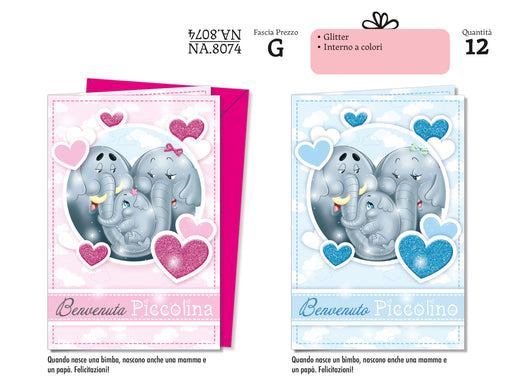 CROMO BIGLIETTI NASCITA FAMIGLIA ELEFANTI NA.8074- Conf da 12