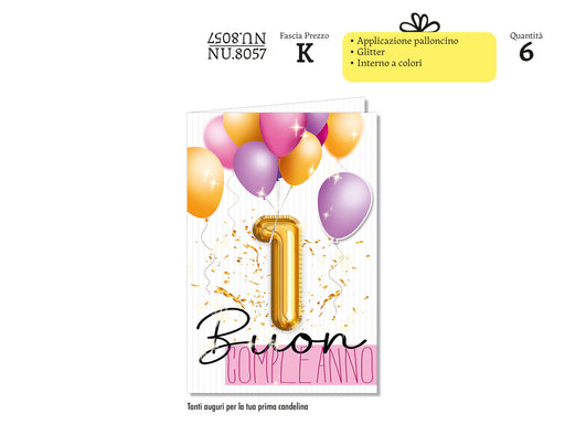 CROMO BIGLIETTI NUMERO 1 APPLICAZIONE PALLONCINO ROSA NU8057 - Conf da 1