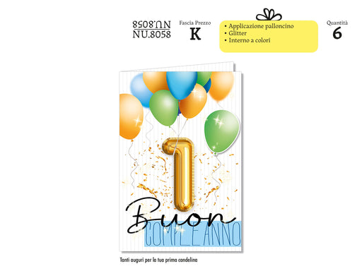 CROMO BIGLIETTI NUMERO 1 APPLICAZIONE PALLONCINO AZZURRO NU8058 - Conf da 1