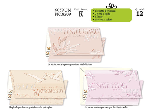 CROMO BIGLIETTI NOZZE PORTASOLDI NO8208 - Conf da 12