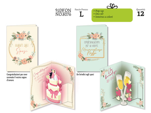 CROMO BIGLIETTI NOZZE POP UP NO8076 - Conf da 12