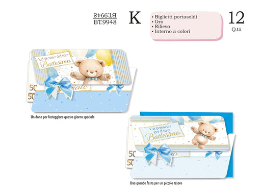 CROMO BIGLIETTI BATTESIMO MASCHIO PORTASOLDI BT.8896 - Conf da 12
