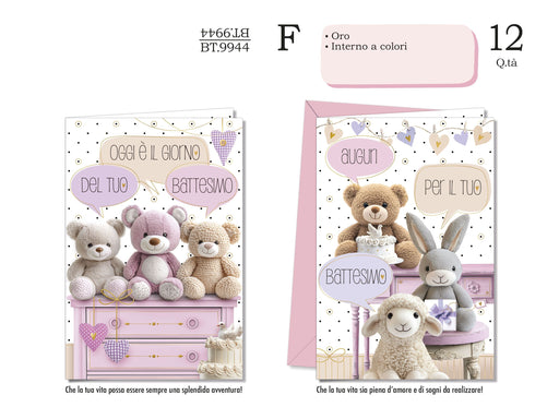 CROMO BIGLIETTI BATTESIMO ROSA BT.9944 - Conf da 12