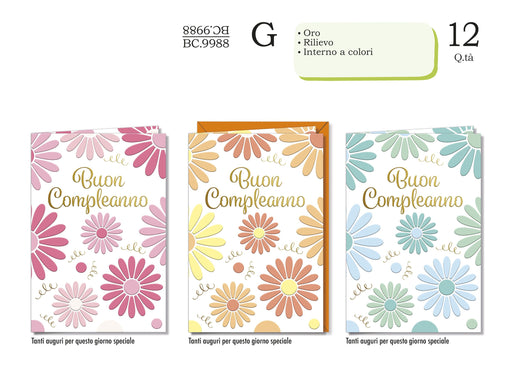 CROMO BIGLIETTI COMPLEANNO FIORI BC.10227 - Conf da 12