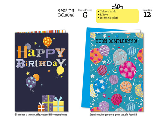 CROMO BIGLIETTI AUGURALI COMPLEANNO ADULTO PALLONCINI BC.6437 - Conf. da 12