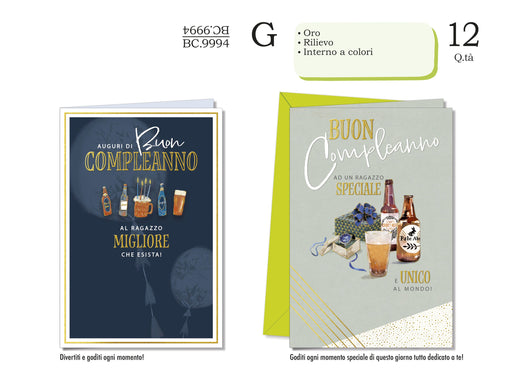 CROMO BIGLIETTI COMPLEANNO MASCHILE BC.9994- Conf da 12