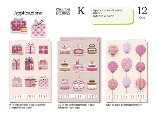 CROMO BIGLIETTI COMPLEANNO FEMMINILE APPLICAZIONE BC.9983 - Conf da 12