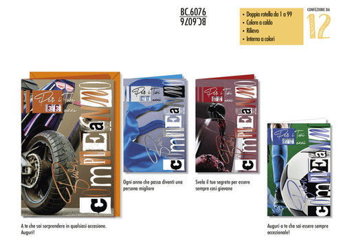 CROMO BIGLIETTI AUGURALI COMPLEANNO MASCHILE ROTELLA BC.6076 - Conf. da 12