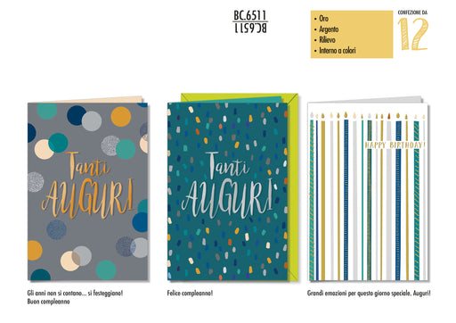 CROMO BIGLIETTI AUGURALI COMPLEANNO MASCHILE BC.6511 - Conf. da 12
