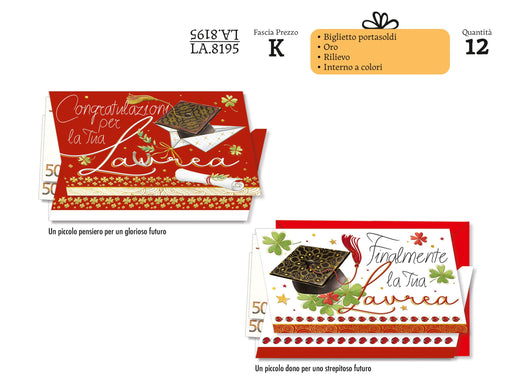 CROMO BIGLIETTI AUGURI LAUREA PORTASOLDI LA.8195- Conf da 12