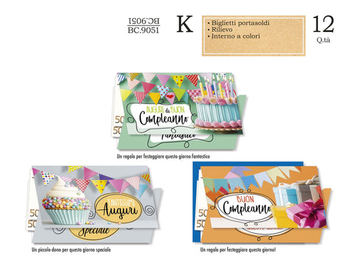 CROMO BIGLIETTI COMPLEANNO BAMBINI PORTASOLDI BC.9051- Conf da 12