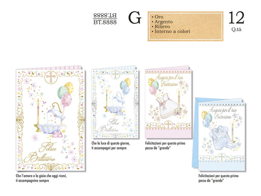CROMO BIGLIETTI BATTESIMO GENERICO 4 SOGGETTI BT.8886 - Conf da 12