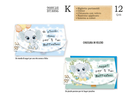 CROMO BIGLIETTI BATTESIMO MASCHIO PORTASOLDI BT.8896 - Conf da 12