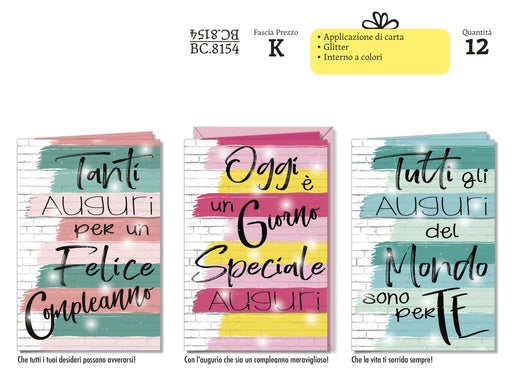 CROMO BIGLIETTI COMPLEANNO AUGURI GENERICO BC 8148 - Conf da 12