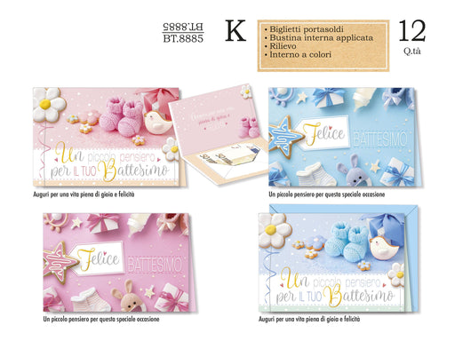 CROMO BIGLIETTI BATTESIMO PORTASOLDI BT.8885 - Conf da 12