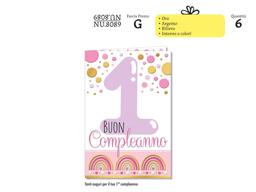 CROMO BIGLIETTI COMPLEANNO 1 ANNO ROSA NU.8089- Conf da 1
