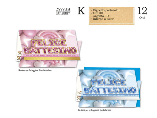 CROMO BIGLIETTI BATTESIMO PORTASOLDI BT.8887 - Conf da 12