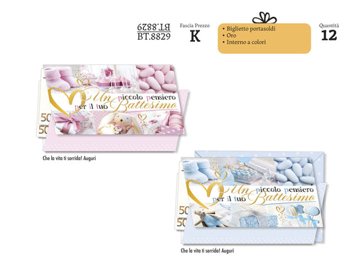 CROMO BIGLIETTI BATTESIMO PORTASOLDI BT.8829- Conf da 12