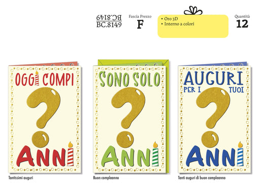 CROMO BIGLIETTI AUGURI PER I TUOI ? ANNI BC 8149 - Conf da 12