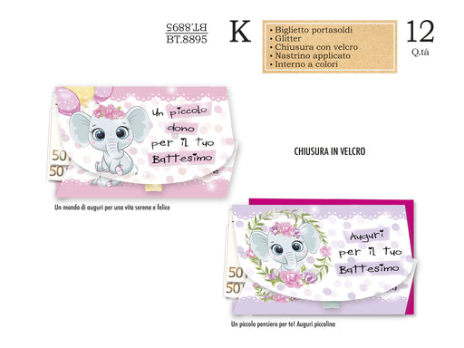 CROMO BIGLIETTI BATTESIMO FEMMINA PORTASOLDI BT.8895 - Conf da 12