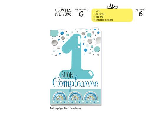 CROMO BIGLIETTI COMPLEANNO 1 ANNO BLU NU.8090- Conf da 1