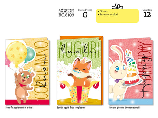 CROMO BIGLIETTI COMPLEANNO ANIMALETTI BC 8109 - Conf. da 12