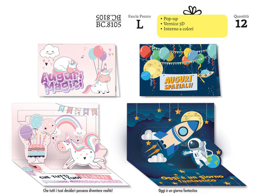 CROMO BIGLIETTI COMPLEANNO BAMBINI POP UP BC8105 - Conf. da 12