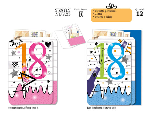 CROMO BIGLIETTI AUGURALI PORTASOLDI 18 ANNI 8213 - Conf. da 12