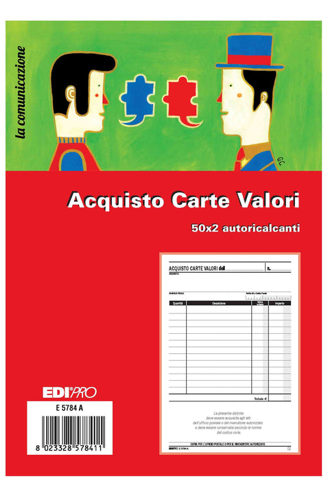 EDIPRO BLOCCO RICEVUTA VALORI BOLLATI 50X2 AUTORICALCANTE 22X15 E5784A - Conf. da 1